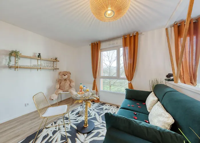 Suite Love Jacuzzi van 35 m^2 ligt op 25 minuten te voet van Disneyland Parijs en verwelkomt gasten met uitzicht op de tuin en toegang tot een kuursalon. Het 1-slaapkamer appartement is op een 36-minuten rijafstand van de luchthaven Parijs-Charles de Gaulle.